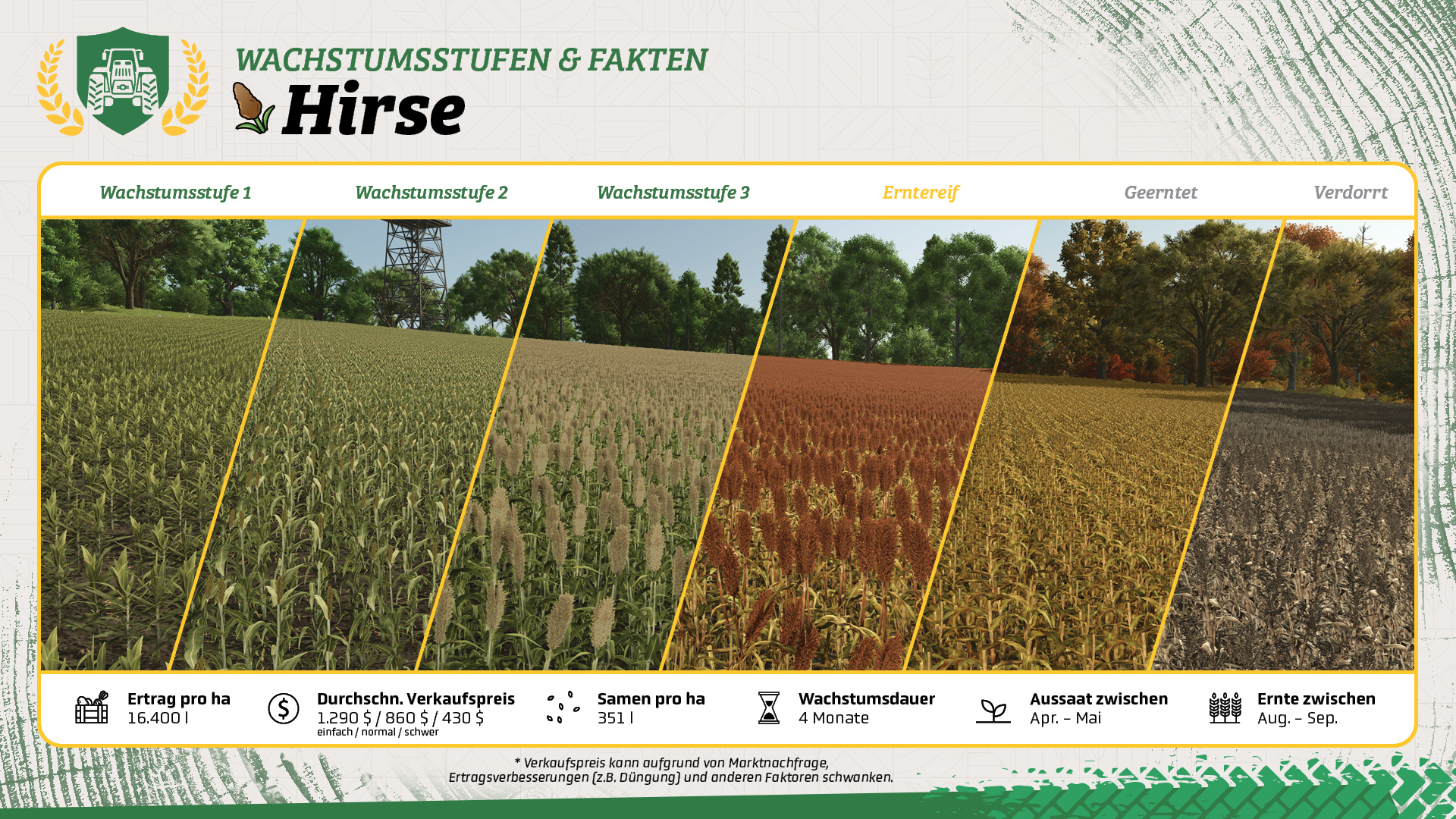 - Verkauf und Nutzen von Hirse: Hier stellt sich die Frage: Was wollt ihr mit der Hirse machen? Verkauft es doch an einem Verkaufspunkt, verfüttert sie an eure Tiere oder verarbeitet es zu Mehl. Deine Ernte, deine Wahl!