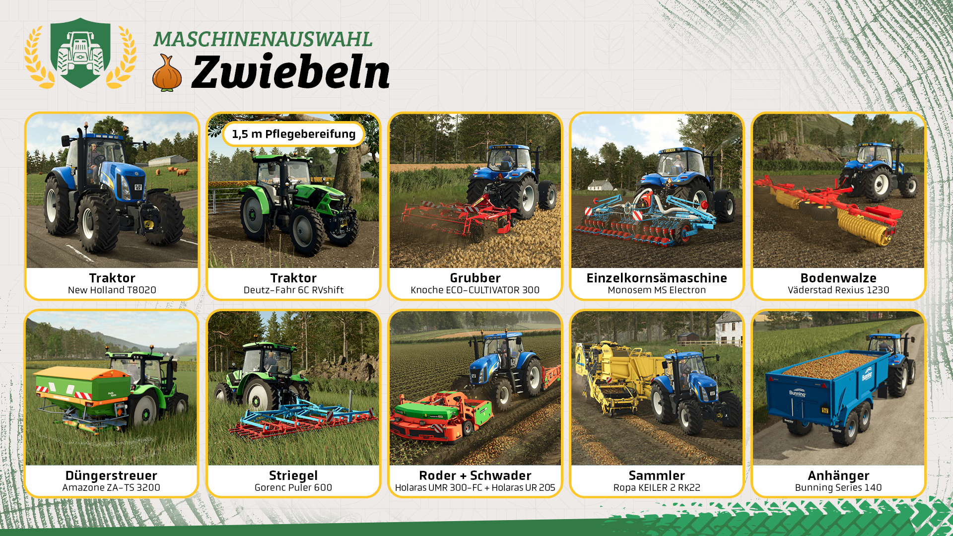 • Ihr benötigt einen Zwiebelschwader, der euch die geernteten Zwiebeln reinigt und in eine Reihe legt.