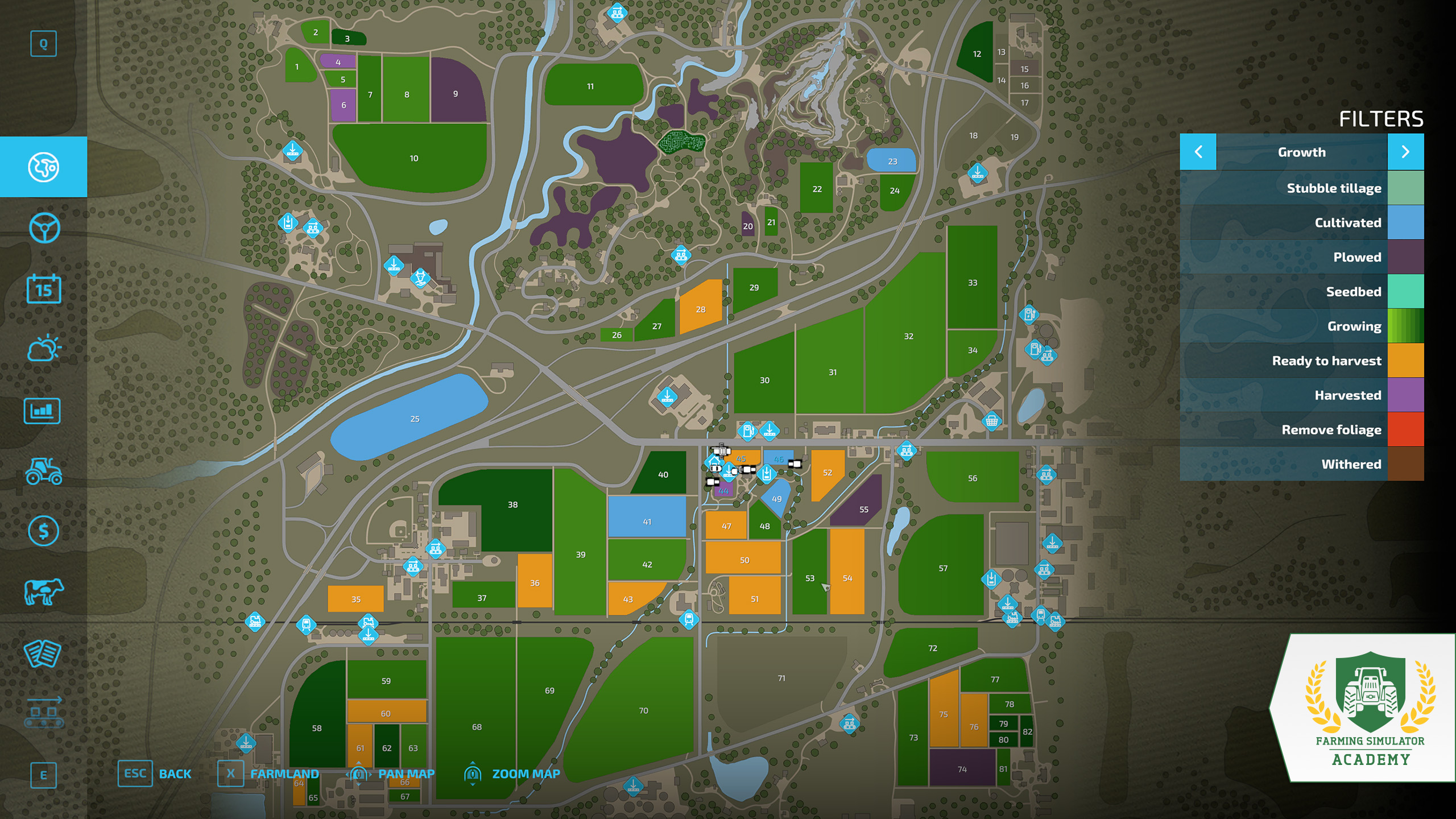 The growth filter indicates the state of the fields, and the crops if they have been planted.